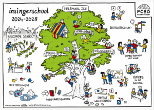 Wij zijn betrokken bij elkaar. Zelfs als we iets alleen doen, doen we dat samen. Bij alles wat je ons ziet doen, streven we ernaar om bovenstaande te laten zien en in een ander los te maken. Dat doen we door vragen te stellen, door onszelf te laten zien en af te stemmen op elkaar. We doen het goed als iedereen zichzelf helemaal durft mee te nemen, de Insingerschool in.